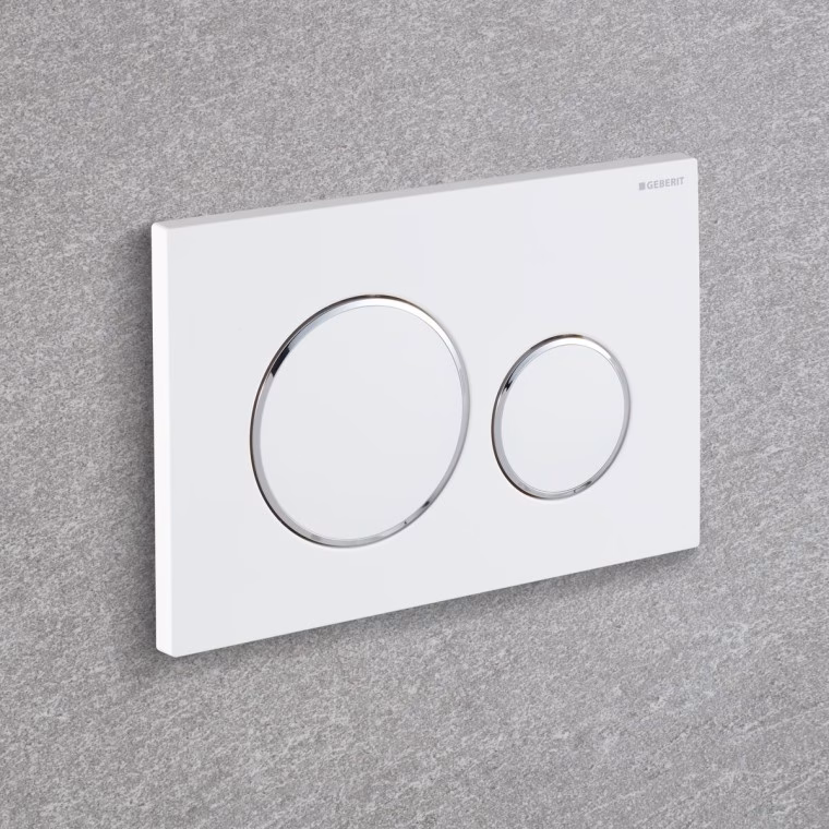 Geberit aktivirne tipke so na voljo v različnih barvah, kot so zlata, bela, lava in črna, ter v različnih površinskih obdelavah, kot so steklo, plastika in naravni materiali. Izbirate lahko tudi med kvadratnimi in okroglimi oblikami gumbov za splakovanje. Oblikovanje nove aktivirne tipke se lahko popolnoma ujema z vašim obstoječim notranjim slogom in drugimi elementi v kopalnici, kot so ploščice.