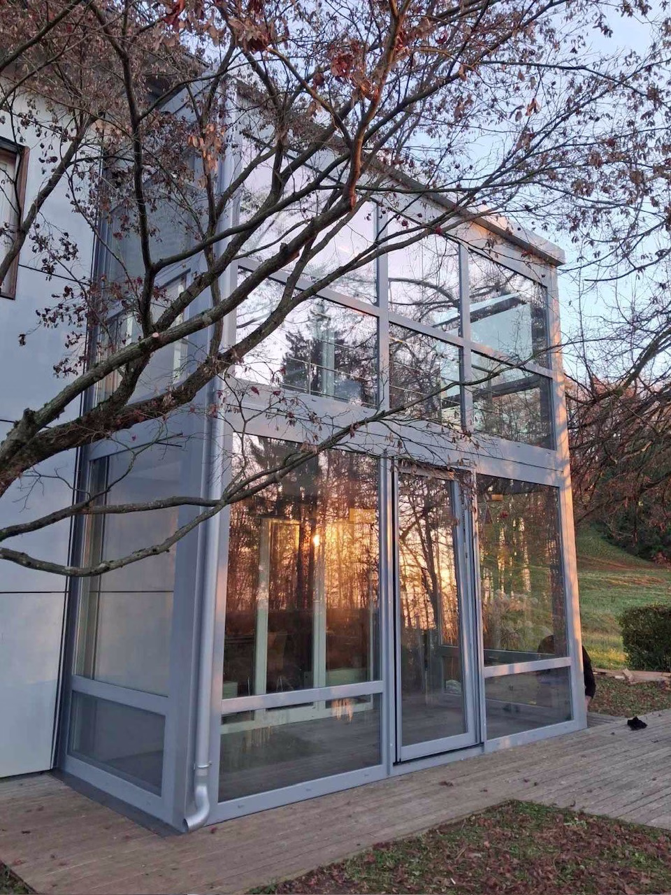 Steklo je srce zimskega vrta. Toda napačno izbrano steklo pomeni toplotne izgube, bleščanje ali kondenz. Poceni enoslojno steklo lahko prinese več škode kot koristi. Uporabite večslojno toplotno izolacijsko steklo – pri tem vam bo pomagal izvajalec. Za južno stran je smiselno uporabiti steklo s sončno zaščito, ki zmanjša pregrevanje.